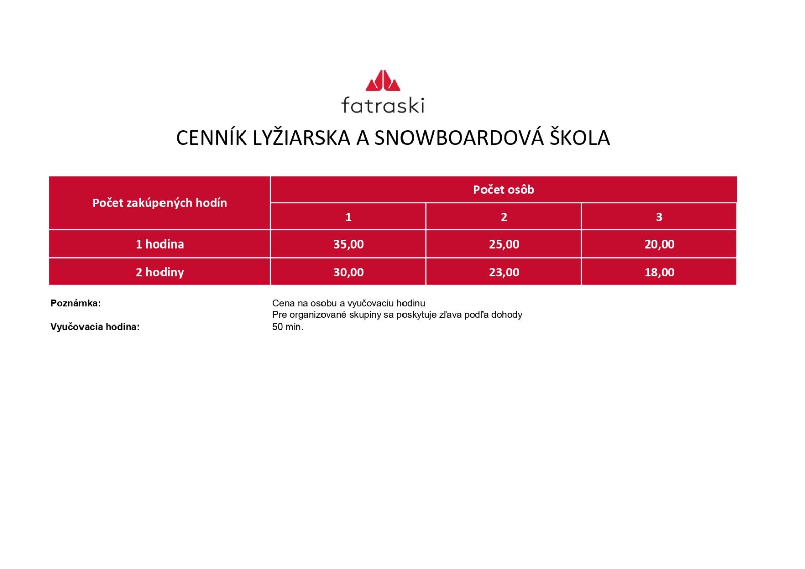 link na cenník - skupinová výuka